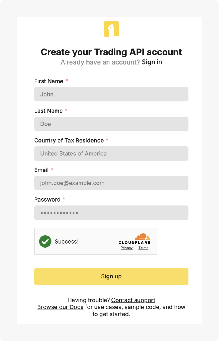 First, sign up for an Alpaca Trading API account by completing the required information.