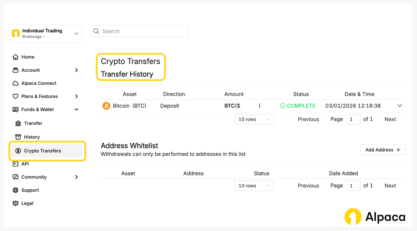 Does Alpaca support Crypto Wallets?