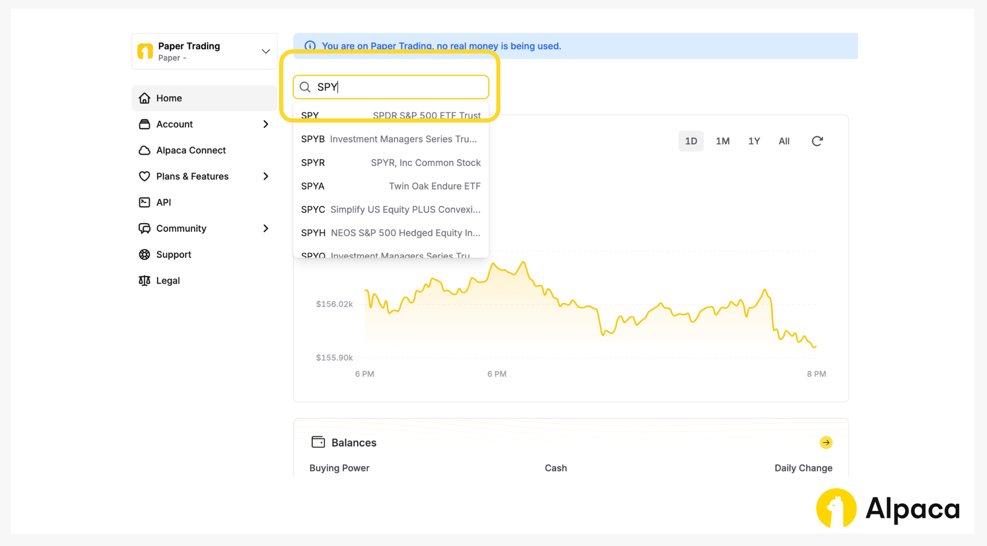 The Paper Trading API is offered by AlpacaDB, Inc. and does not require real money or permit a user to transact in real securities in the market. Providing use of the Paper Trading API is not an offer or solicitation to buy or sell securities, securities derivative or futures products of any kind, or any type of trading or investment advice, recommendation or strategy, given or in any manner endorsed by AlpacaDB, Inc. or any AlpacaDB, Inc. affiliate and the information made available through the Paper Trading API is not an offer or solicitation of any kind in any jurisdiction where AlpacaDB, Inc. or any AlpacaDB, Inc. affiliate (collectively, “Alpaca”) is not authorized to do business.