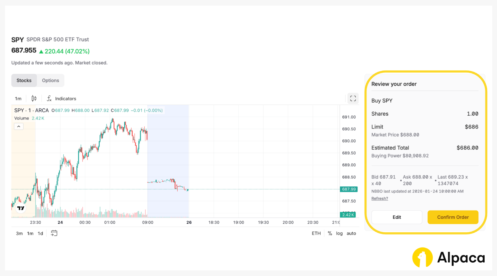 Alpaca’s 24/5 trading requires no SDK changes; just a few minor parameter changes. You can mostly use your existing workflow to trade all National Market System (NMS) securities before market open, after the standard close, and overnight through the week.
